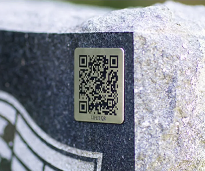 Each laser‑etched, stainless steel plaque attaches discreetly to a headstone, urn, or garden marker. With a simple phone scan, visitors instantly open a private online tribute with photos, videos, a biography, and more.